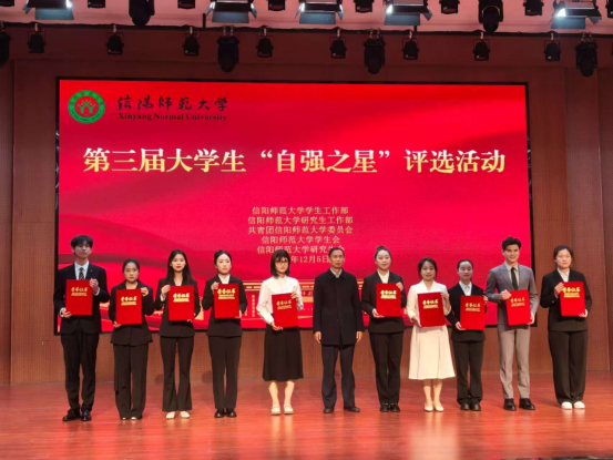 据悉,本次评选共有来自谭山校区、淮河校区、信阳理工学院的28位候选人晋级决赛,共评选出信阳师范大学第三届大学生“自强之星”获得者10人,信阳师范大学第三届大学生“自强之星”入围奖18人。“自强之星”评选活动,不仅在当代大学生中树立了励志成才的优秀榜样,宣传了大学生顽强拼搏、砥砺前行的优秀品质,也激励了新时代青年践行“强国有我”的青春誓言。
